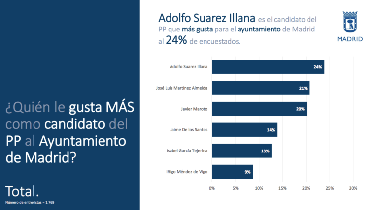 La encuesta se hizo en los días en que Adolfo Suárez Illana ganaba cierto protagonismo en el entorno de Pablo Casado, con la creación de la nueva fundación Concordia y Libertad para rescatar los valores de la Transición, y cuando surgía su nombre como posible candidato. Por su lado, Martínez Almeida es el actual portavoz del PP en el Ayuntamiento de Madrid, desde el que ejerce una oposición dura pero no exenta de toques irónicos contra la alcaldesa Manuela Carmena.