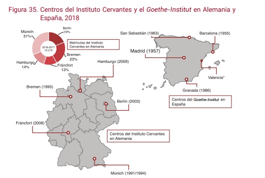Aunque Alemania no se queda atrás a la hora de apoyar el crecimiento de su lengua materna, España también promueve el español con centros institucionales repartidos por todo el mundo. Ambos países están destacando por una relación bilateral dinámica que beneficia la circulación de personas entre los dos países.