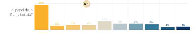 Ese 36% de personas que puntuaron con un 1 es una losa para el resultado final ya que sólo el 12% se decantó por el 5 y en las cifras superiores no se supera el 9%. Así las cosas, únicamente el 4% de los consultados otorga a Letizia un 10 como reina, mientras que Felipe VI obtenía el 22% en ese mismo dato.