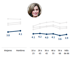 Por sexos, los hombres puntúan más alto a Letizia (4,1 puntos) que las mujeres (3,8), mientras que por edades, los más jóvenes valoran mejor el desempeño de la Reina consorte que la gente mayor.