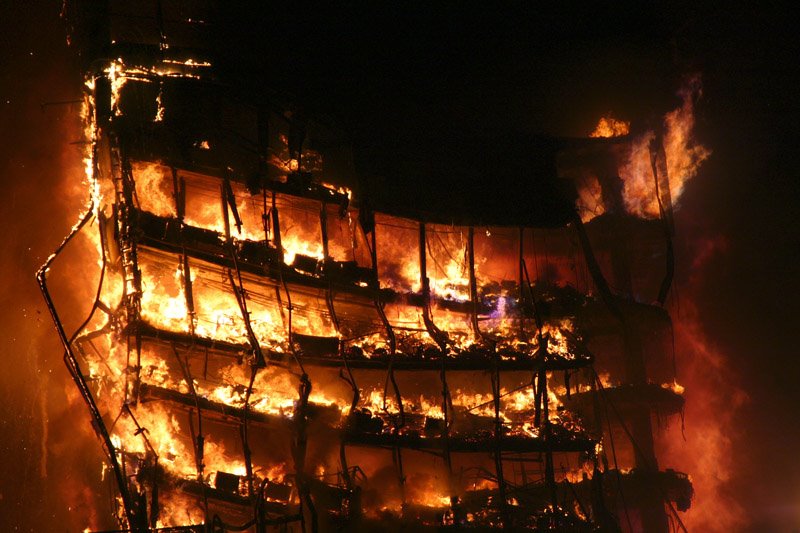Todo comenzó a las 23:08 horas del sábado 12 de febrero de 2005 cuando de detectó fuego de la Torre Windsor a la altura de la planta 21 del edificio. Veinte minutos después las llamas envolvían la parte superior del emblemático rascacielos. El fuego no se extinguió hasta pasados dos días y lo más sorprendente es que nunca se culpó a nadie del suceso.