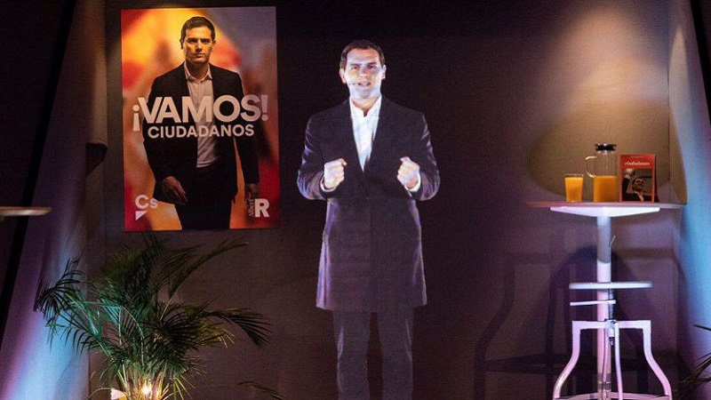 La presentación más curiosa la protagonizó Albert Rivera, líder de Ciudadanos, que decidió trasladarse hasta el pueblo de Pedraza en Segovia, en cuya plaza pidió el voto a sus 400 habitantes, mientras su imagen se retransmitía simultáneamente en la sede de Cs en Madrid a través de un holograma.