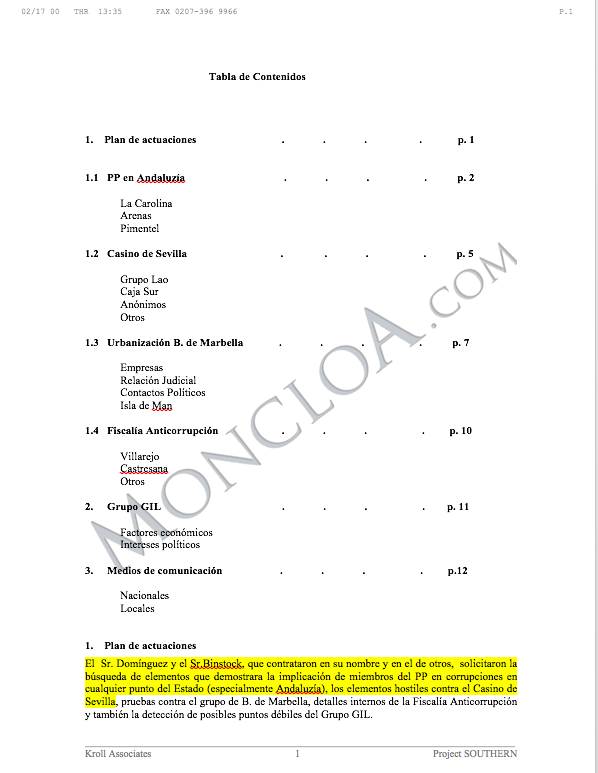 El informe, bautizado como “Project Southern” da cuenta de que los empresarios Manuel Domínguez y Judah Elehazar Binstock, “solicitaron la búsqueda de elementos que demostraran la implicación de miembros del PP en corrupciones en cualquier parte del Estado”, especialmente en Andalucía.