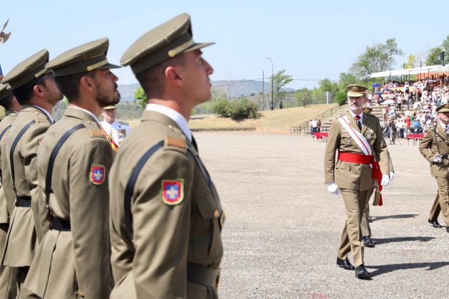 Felipe VI ha presidido el acto de entrega de despachos y nombramientos a los nuevos oficiales del Ejército de Tierra que han completado su formación en la Academia General Militar y en las respectivas Academias específicas como Infantería, Artillería, Caballería, Ingenieros, Transmisiones y Guardia Civil.