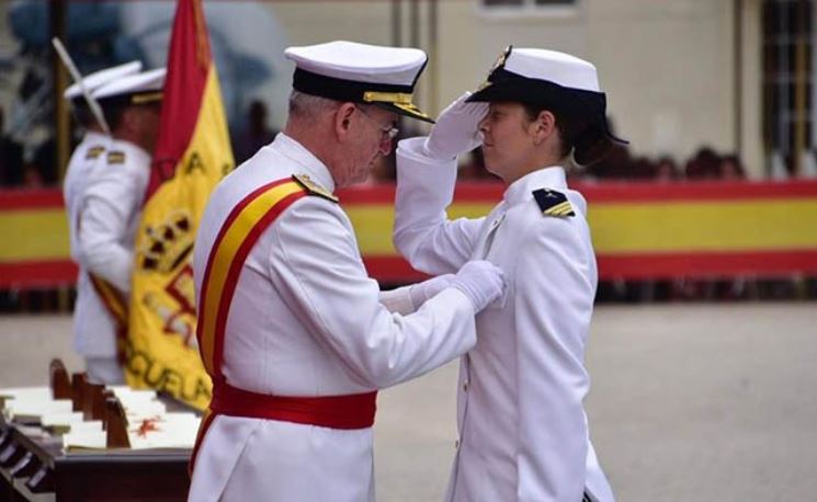 El almirante jefe de Estado Mayor de la Armada,Teodoro E. López Calderón, no solo le ha entregado el despacho a Antuña como “número uno” de la promoción, sino que además le ha dado la Cruz del Mérito Naval como recompensa por su “brillante expediente académico”. La nueva sargento, que lleva diez años en la Armada, será destinada ahora a Ferrol.