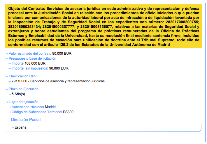 La defensa de la Universidad Autónoma de Madrid era un tema de todos. Así lo entendió el Rectorado. Por ello, la representación legal salió a concurso con un presupuesto base de licitación de 108.000 euros. La propuesta de Sagardoy Abogados fue la que mejor se adaptaba a las necesidades de la Autónoma. No solo por la experiencia del bufete defendiendo causas similares, como la que afecta a empresas como Glovo. Sino porque era de las más rentables.
