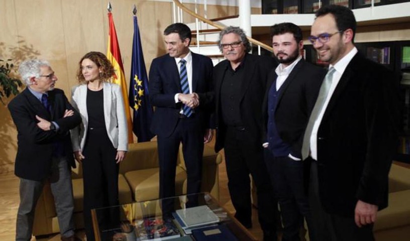 En la moción de investidura, desde ERC comentaron lo siguiente al PSOE: «A nosotros nos hace la misma poca gracia votar con ustedes que seguramente a ustedes votar con nosotros», y es que, en realidad, su sí a la moción era un no a Rajoy.