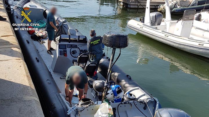 En Málaga, concretamente en la Playa del Rincón de la Victoria, los agentes de la Guardia Civil encontraron una embarcación volcada que se encontraba a la deriva. Esta se recuperó junto a los motores que llevaba, cada uno de ellos de unos 300 CV de potencia.