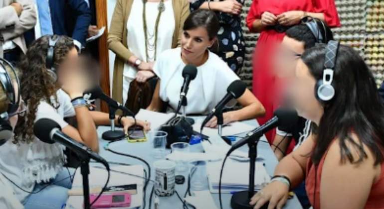 La reina entró en directo en Radio Alfares, de la Plataforma de Radio Educativa de Extremadura. Aquí, Letizia, compartió micrófono con un grupo de alumnos y se interesó por la labor que realizan en dicha radio.