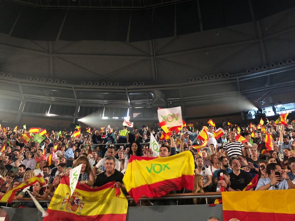 Vox ha empezado oficialmente su pre-campaña electoral y lo ha hecho por todo lo alto. Unas 13.500 personas, según datos de los organizadores, han llenado las gradas de la antigua plaza de toros de Vistalegre, en el barrio madrileño de Carabanchel, para escuchar el mensaje de los principales líderes del partido. Más de dos horas de discurso en el que el independentismo, el PSOE y la exhumación de Franco han sido los absolutos protagonistas.