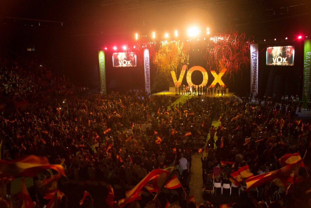 En 2018 tuvo lugar el primer baño de masas del partido en el Palacio Vistalegre de Madrid bajo el lema ‘La España Viva pide Elecciones’. El acto reunió a más de 9.000 simpatizantes y contó con la participación de Santiago Abascal, el secretario general, Ortega Smith, la presidenta de Vox Madrid, Rocío Monasterio o José Antonio Ortega Lara. Entre los asistentes, destacó la presencia del padre de Juan Carlos Monedero, Santiago Monedero o el periodista, Fernando Sánchez Dragó.