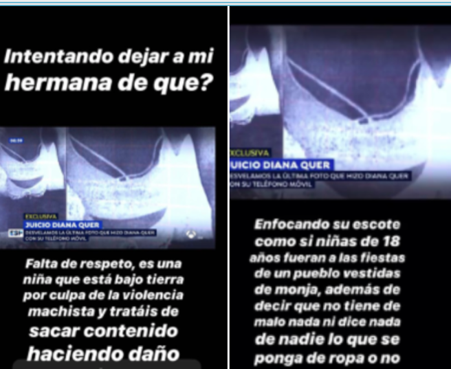 «Mi hermana es una niña que está bajo tierra por culpa de la violencia machista y tratáis de sacar contenido para hacer daño. Enfocando su escote como si niñas de 18 años fueran a las fiestas de un pueblo vestidas de monja, además, de decir que no tiene de malo nada ni dice nada de nadie lo que se ponga de ropa o no«, concluyó.