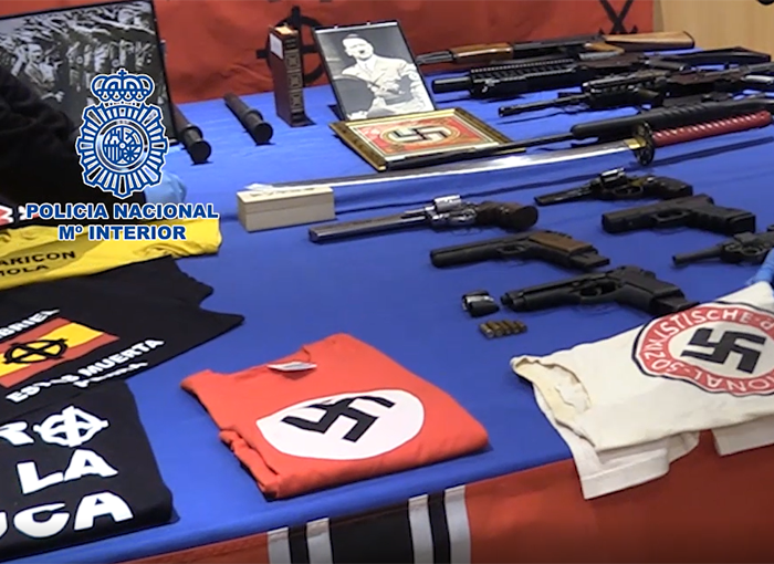 Todas estas acciones que el arrestado llevaba a cabo en la red se encontraban acompañadas de la exhibición de numerosa simbología nazi y de extrema derecha.