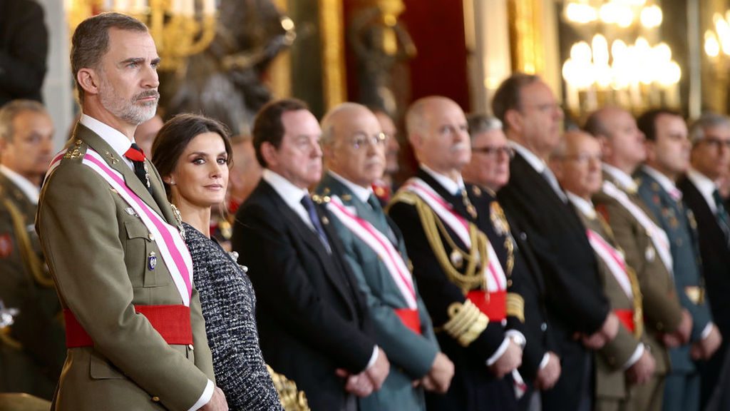 Con el uniforme de capitán general del Ejército de Aire, Felipe VI se ha dirigido a los militares presentes en el Salón del Trono del Palacio Real para elogiar su «profesionalidad, sentido del deber y del honor» con España. Además, el rey ha añadido que garantizar la libertad y la seguridad de los españoles es una misión fundamental para el desarrollo y el bienestar del país, y que está muy orgulloso por el impecable desempeño que están llevando a cabo.