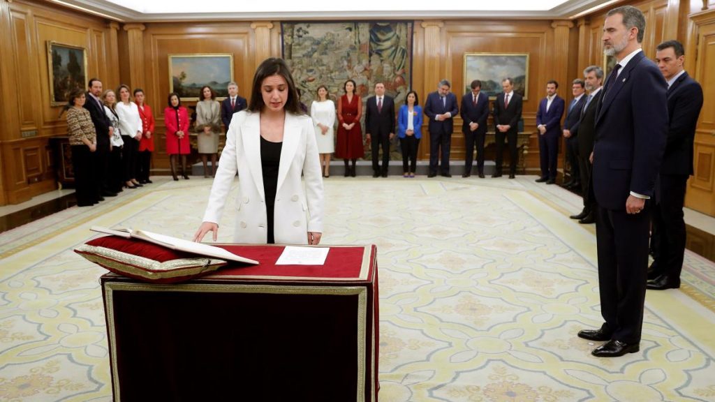 La nueva ministra de Igualdad, Irene Montero, ha cometido un error a la hora de jurar su cargo ante el Rey Felipe VI en el Palacio de la Zarzuela de Madrid. A la hora de terminar su juramento, Montero ha dicho «Consejo de Ministras» en vez de «Ministros». Esto ha sido duramente criticado en las redes sociales ya la mayoría de los usuarios de Twitter pensaban que no era lo correcto. Y tenían razón.