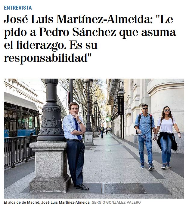 Hoy mismo, sin ir más lejos, sea o no una fotografía reciente, El Mundo publica una entrevista con José Luis Martínez-Almeida, apoyado sobre una farola y sí, con la mano en la barbilla.