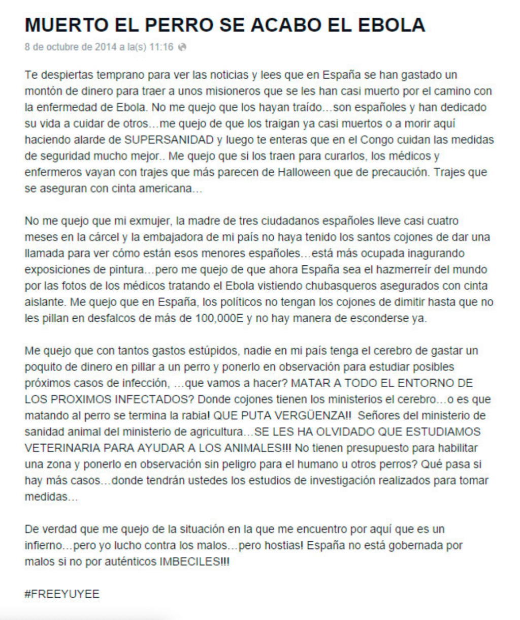 Muchos pidieron la dimisión de Rajoy. El escándalo fue sobredimensionado por algunos que buscaban sangre política, ya que el perro de Romero, llamado Excalibur, fue sacrificado por el potencial riesgo que podía suponer para la población. Pero esos mismos que pedían a Rajoy, ahora callan con la crisis del coronavirus porque son ellos los que gobiernan. Hagamos un recopilatorio de quiénes pidieron dimisiones y qué opinaban entonces sobre la gestión de la crisis del ébola.