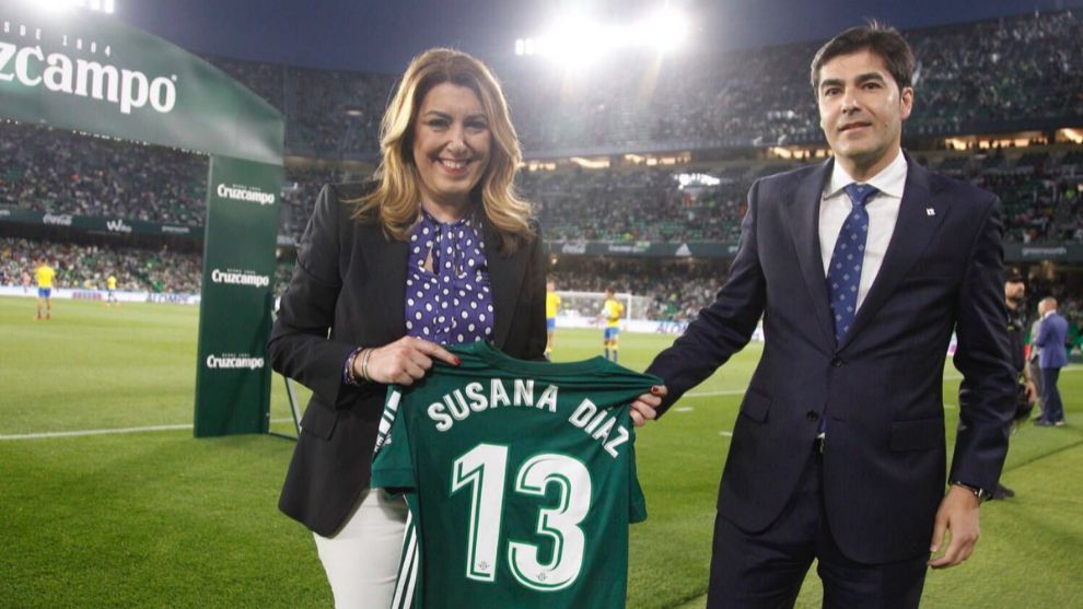 La expresidenta de la Junta de Andalucía también ha tomado partido en esa guerra futbolística que vive la ciudad de Sevilla al menos dos veces al año. Susana Díaz ha tomado partido por el equipo verdiblanco y, por tanto, se ha situado en uno de los extremos de la ciudad andaluza. Díaz ha sido captada más de una vez celebrando goles del Betis.