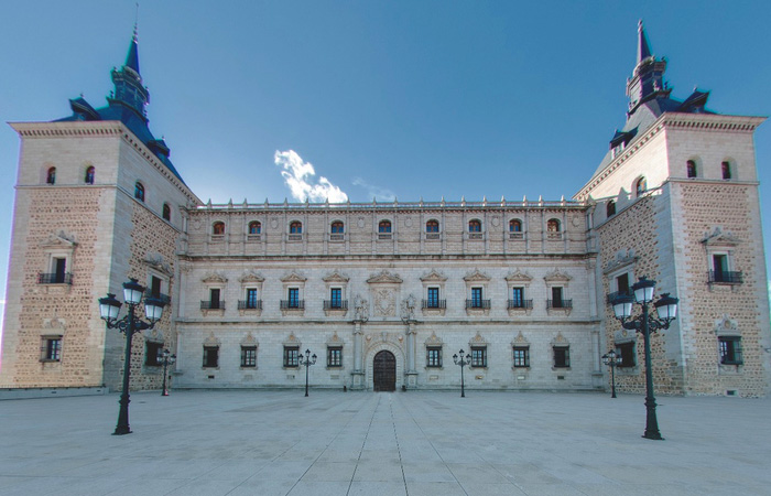 El Alcázar de Toledo se encuentra a más de 500 metros, en la colina más alta de la ciudad. El edificio, tuvo diversos usos desde su creación. Desde cárcel de la corona a cuartel militar, la sede de la Academia de infantería, o el Museo del Ejército en la actualidad. En todo caso, es un edificio majestuoso e imponente que siempre fue fortificado. El impresionante edificio ha sido pasto de las llamas en varias ocasiones y por ello fue reconstruido casi completamente en 1940.