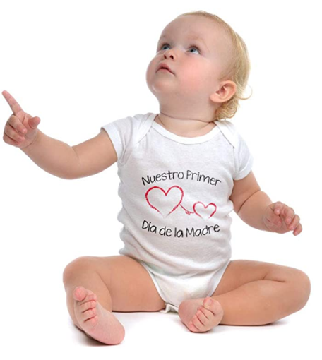 Para madres primerizas, un regalo original y adorable es el el de obsequiarle por el Día de la Madre con un body para el bebé. Este puede incluir algún mensaje que aluda a este día especial, como «Nuestro primer Día de la Madre«.