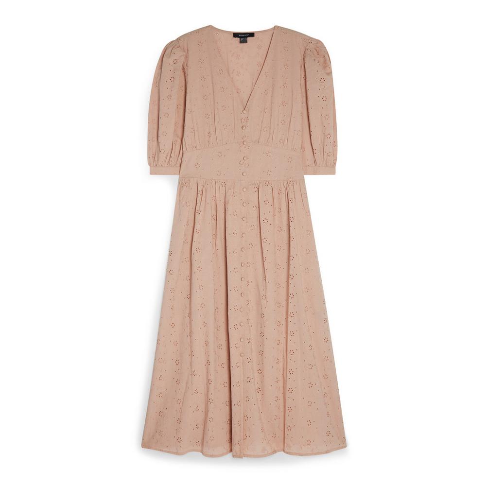 Este fantástico vestido midi de estilo vintage será una de las tendencias de la primavera sin ninguna duda y un bestseller de Primark por varias causas. Primero por que el largo midi se lleva mucho. Es muy favorecedor y encaja tanto para las que son un poco recatadas y no quieren enseñar mucha pierna como para las que buscan un aire fresco en su armario. Pero estamos seguros de que arrasará también por ese aire que respira gracias a los botones delanteros y bordados en color rosa pastel, una de las tendencias de la temporada. Su precio; tan sólo 22 euros.