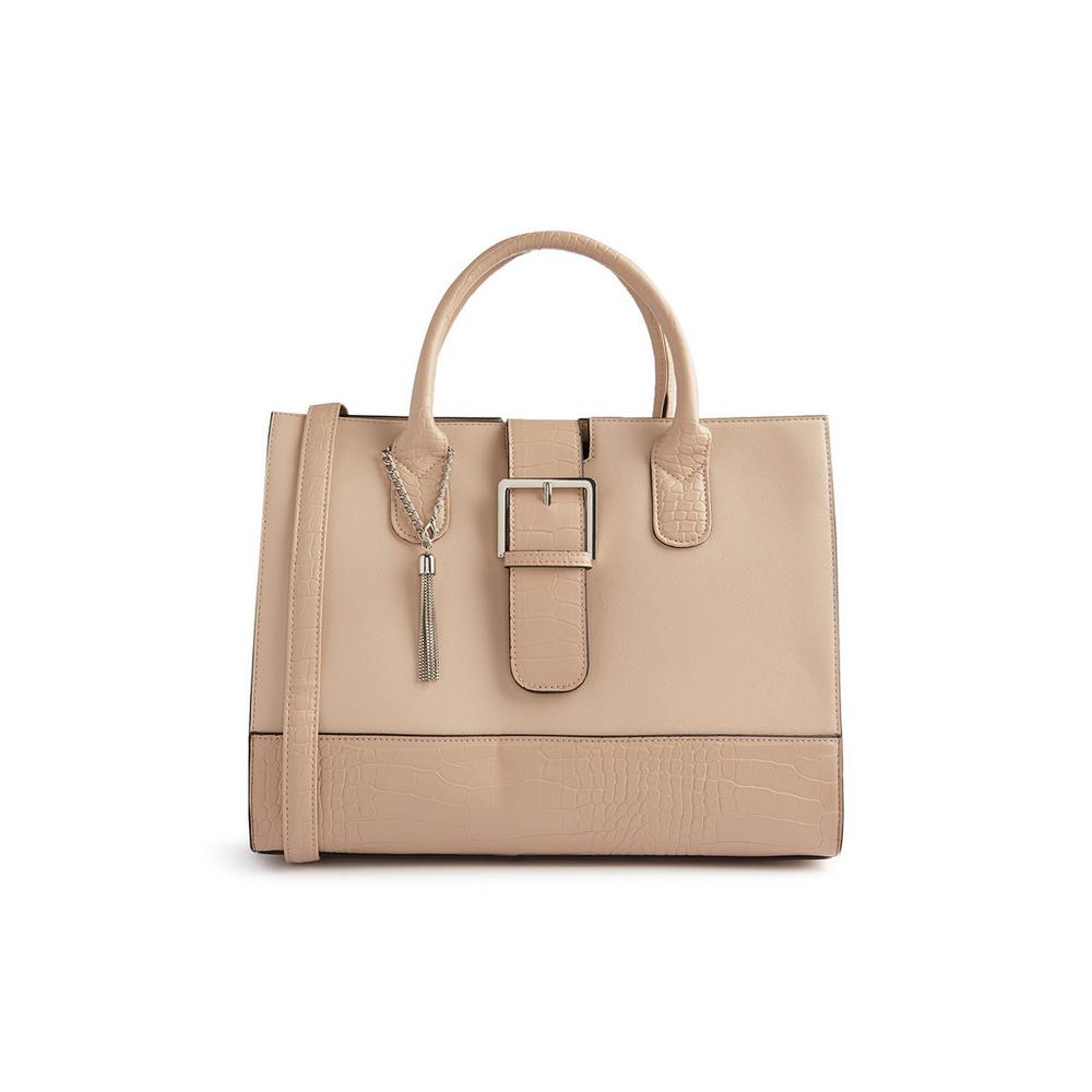 El tote bag es un icono de estilo desde hace mucho tiempo. Es un bolso práctico que destaca por su tamaño, lo que facilita que podamos meter en él todo lo que queramos, literalmente, todo. Además, otra de las características de este tipo de bolsos es que tiene dos asas bastante largas que nos permiten transportarlo colgado de nuestros brazos – y liberar el peso de los hombros – sin restarnos movilidad. Este que podemos adquirir en Primark reúne todos estos requisitos y además tiene hebilla lo que nos permite tener nuestras pertenencias alejadas de los carteristas.