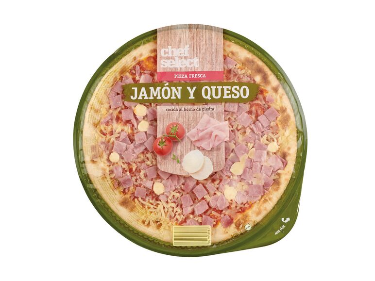 Por último, este sábado tenemos en Lidl otra oferta que nos facilitará una cena rápida o improvisada. Se trata de una pizza de jamón y queso. Además, las pizzas son uno de los valores añadidos de la cadena, uno de los productos más demandados y consumidos por sus clientes. Tras la marca blanca de las pizzas de Lidl se esconde la compañía Palacios Alimentación con sede en La Rioja y que está especializada en este tipo de pizza española.