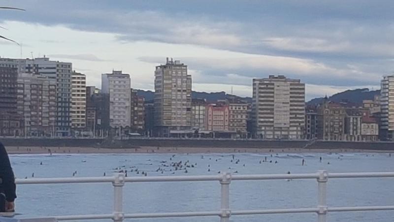 A lo largo de las primeras horas del día se pudo registrar momentos con más de cien practicantes de este deporte coincidiendo en la principal bahía gijonesa.