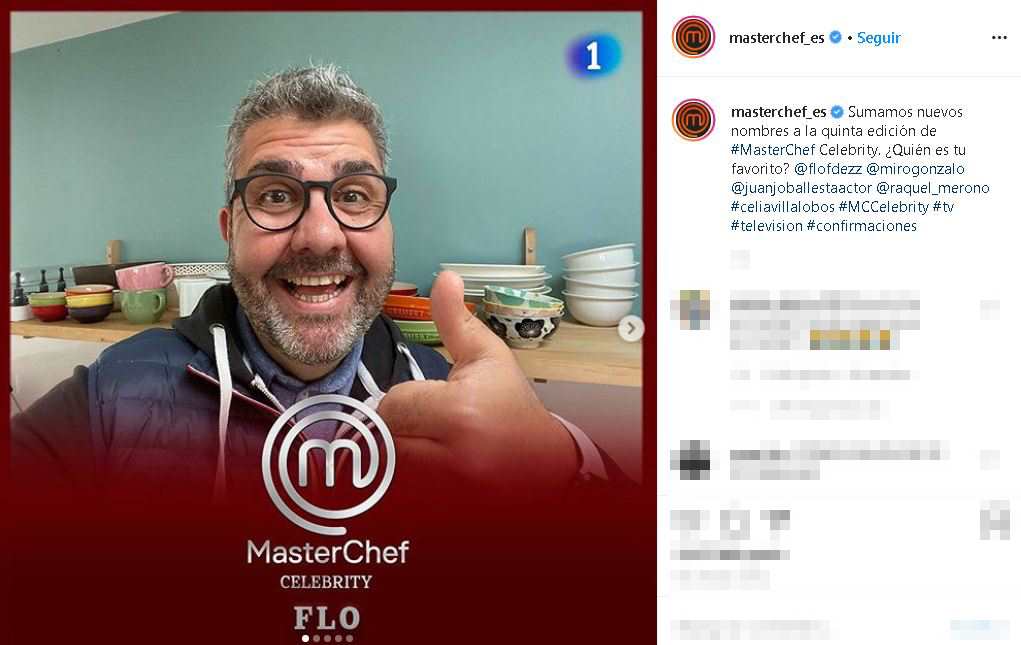 El conocido humorista confirmó hace tres días en su Instagram la noticia de su fichaje por Masterchef Celebrity 5: «Las cocinas de ‘MasterChef’ me esperan!!! ACOJONANTE!!!», escribió en su cuenta. Desde que Pepe Navarro le descubriera, el conocido como Flo no ha parado de encadenar éxitos en cine y televisión y ser un referente del humor en España.