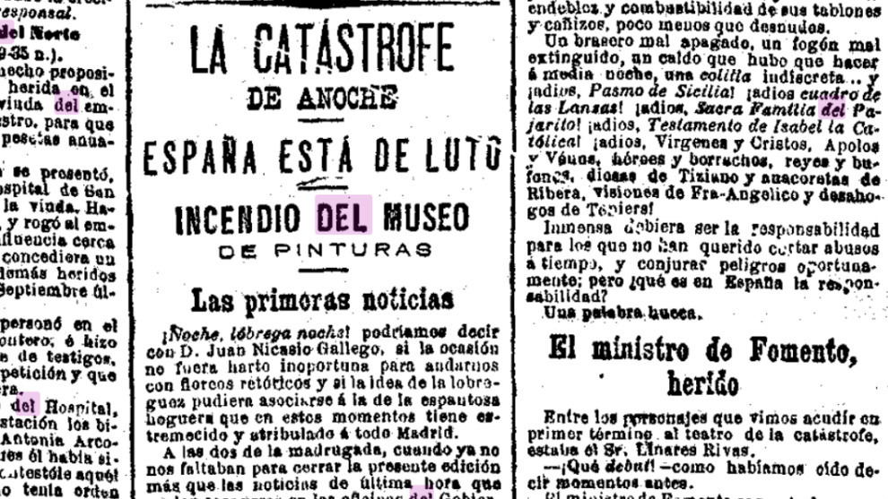 El Gobierno Central no tomaba ninguna medida. Harto de la situación, Mariano de Cavia decidía publicar una noticia falsa en la portada del periódico El Liberal que titulaba como: «Incendio en el Museo del Prado».