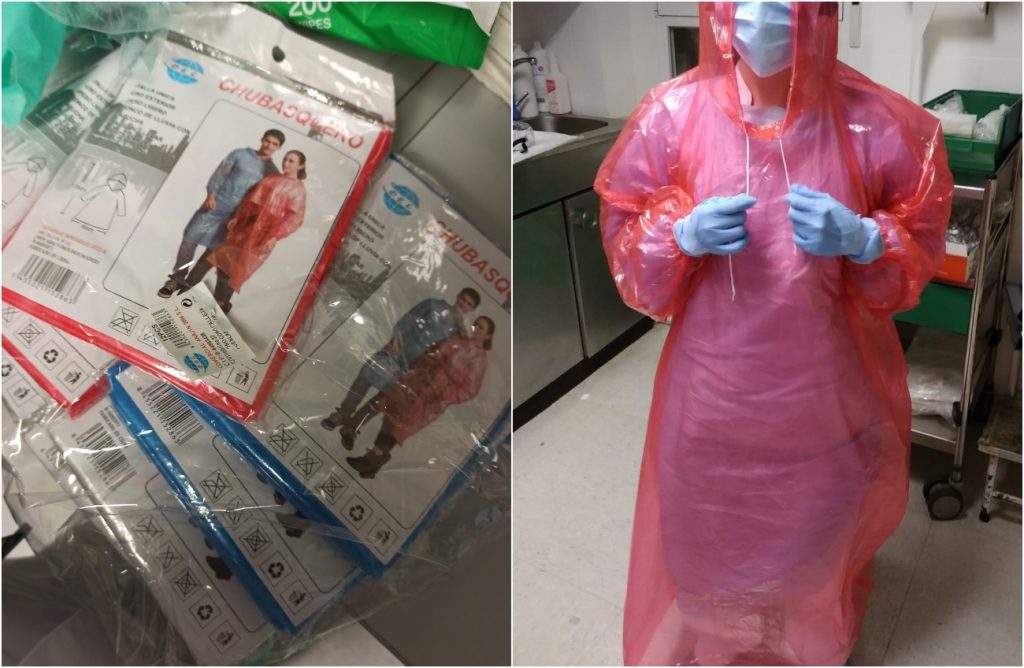 Desde un principio se denunció la falta de material o la inadecuación del material. Se colgaron innumerables vídeos y fotos de cómo se las apañaban para mitigar en lo posible este otro drama. Hacían uso de bolsas de basura e improvisaban un traje de protección con ello y lo mismo para proteger la cabeza o el calzado. Había incluso tutoriales que toda buena voluntad colgaban para los compañeros. Eran necesarios EPI-2 pero escaseaban, con lo que se tenían que conformar con equipos de protección menor EPI-1 o ni eso, incluso indicándoles que con eso era suficiente y por tanto negando la realidad. El gigante riesgo de contagio con la insuficiente protección estaba servido y lo más que podían hacer era compartir los equipos de mayor protección.