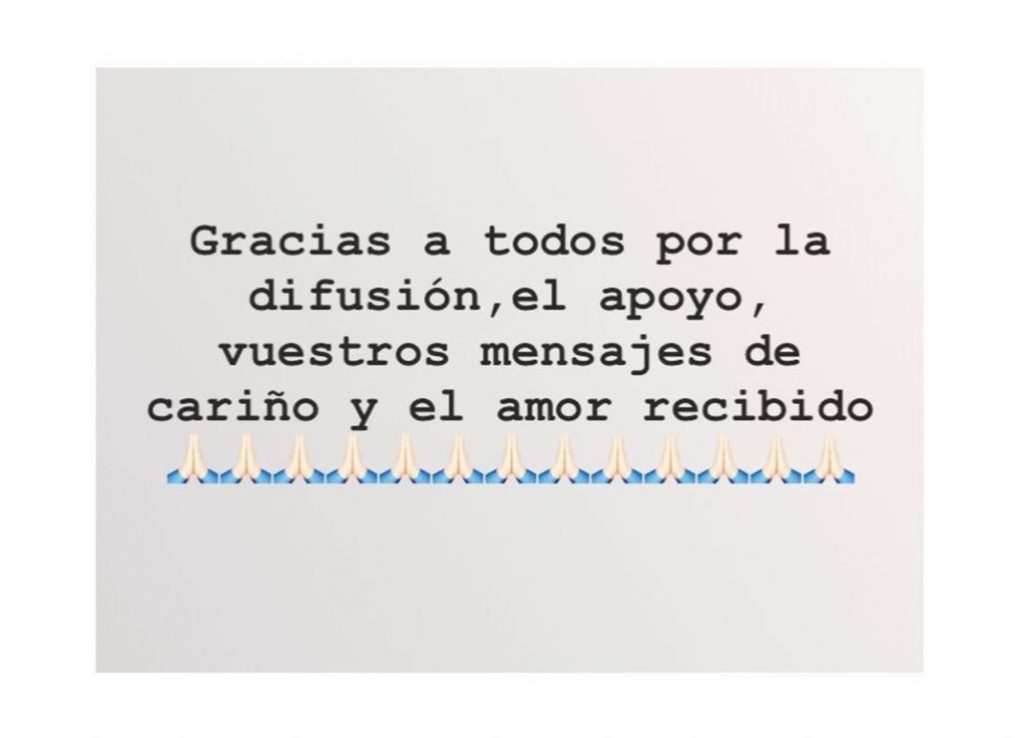 La actriz y su familia seguían pendientes de la investigación y en vilo por tener noticia. Mientras, seguía en las redes poniéndonos al día: “Seguimos sin noticias, desgraciadamente, pero no perdemos la esperanza. Gracias por tanto cariño, mi familia lo agradece!”.