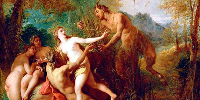 De acuerdo a lo que cuentan algunas de estas fábulas de origen mitológico, una de las mayores aficiones de este dios griego era perseguir a las ninfas de los bosques para poseerlas sexualmente. Las ninfas se consideraban deidades menores relacionadas con los elementos naturales (manantiales, montes, arroyos, bosques, etc.). Cuentan de ellas que tenían una belleza inigualable, así como una eterna juventud. Muchos fueron los dioses que intentaron poseerlas y robarles su libertad. El dios Pan era uno de tantos otros interesados en estas reinas de los bosques.