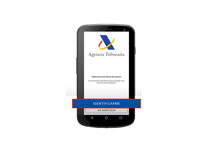 Una vez que dispongas del número de referencia que te solicita la aplicación, podrás empezar a completar la identificación. Te encontrarás con una pantalla principal en la que podrás pulsar sobre «Identificarme» para introducir tus datos y acceder a la aplicación.