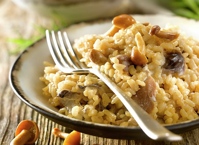 Esta es otra de las recetas con arroz que puedes preparar fácilmente. Para ello debes poner en una sartén dos dientes de ajo y una cebolla picada, dejando que se mezcle con un poco de mantequilla (70 g). Luego se le incorporan 300 gramos de setas troceadas y se sazona. Se deja cocinar hasta que se desprenda todo el agua.