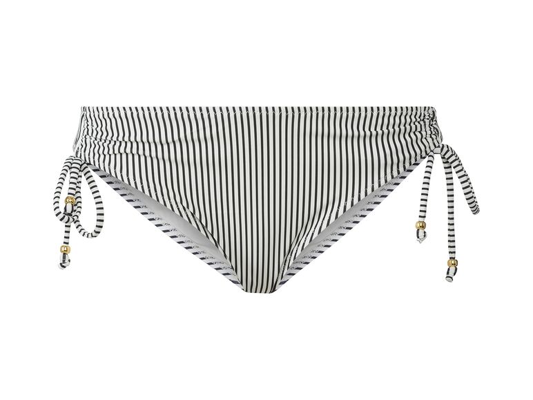 Un modelo muy combinable con cualquier diseño de sujetador bikini. Se trata de una braguita con estampado de rayas blancas y cinta ajustable. También lleva elastano para facilitar el ajuste con comodidad. Hay variedad de tallas, de la 38 a la 44.