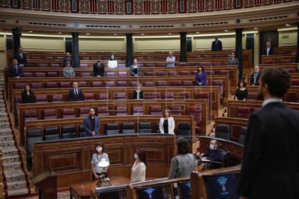 A las 12 de la mañana, la presidenta del Congreso de los Diputados, Meritxell Batet interrumpía la sesión – como había anunciado al comienzo – para que los diputados y el resto de trabajadores pudieran homenajear a las casi 30.000 víctimas mortales por la pandemia de coronavirus. Además, las banderas del Congreso se encuentran a media asta o con el crespón negro al igual que en la mayoría de los edificios institucionales de nuestro país.