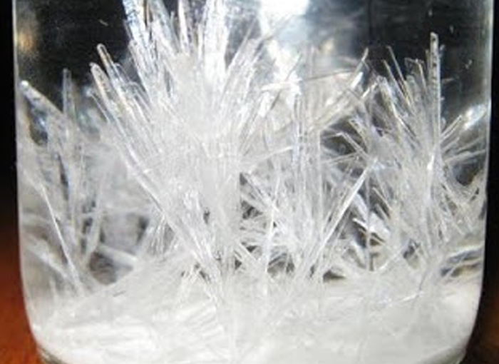 En primer lugar debes llenar el frasco con agua a más o menos un cuarto de su capacidad. A continuación debes ir colocando unas 10 aspirinas de a una disolviendo cada vez y tapar el frasco. Para evitar que los cristales se rompan es muy importante que no muevas el frasco.