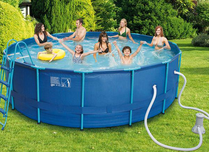 Fabricada en PVC, cuenta con un diámetro de 457 cm y 122 cm de alto, con una capacidad de 16 m3 de agua. Incluye una depuradora de cartucho de 3.400 l/h, así como cobertor, tapiz de suelo, escalera y kit de mantenimiento.