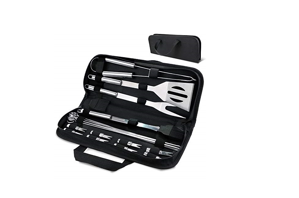 Este set de barbacoa está compuesto de 20 piezas, perteneciente a la marca WisFox. Lo más destacado es que contiene una multiplicidad de tenedores y cuchillos para coger de manera más idónea la carne. También cuenta con un cepillo de limpieza duro y cerdas para eliminar los restos pequeños.