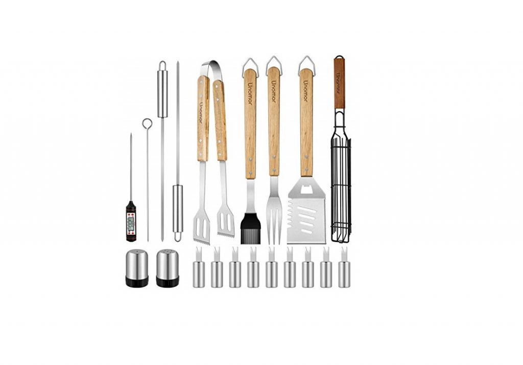 Por último, este conjunto de utensilios de 20 piezas para barbacoa de la marca Unomor es otro de los preferidos por los usuarios. Destaca que muchos elementos tiene mangos de madera, por lo que aísla de manera térmica el fuego. El resto de utensilios está realizado con materiales muy resistentes en el tiempo.