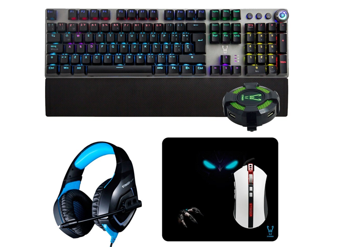 A la venta por 89 euros, tan solo está disponible para su compra a través de Internet, y se compone de teclado, ratón, alfombrilla, auriculares y HUB.