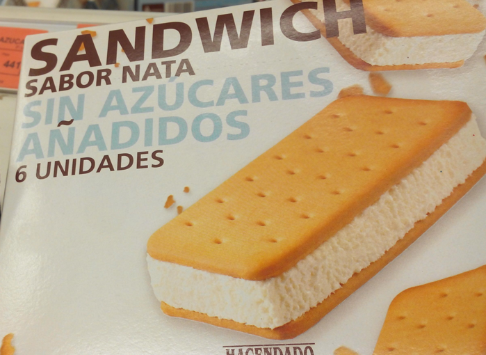 Uno de los helados típicos para poder disfrutar en el verano son los de tipo sandwich. En este caso una opción saludable es el Sandwich sabor nata de Hacendado, el cual no tiene azúcares añadidos y es uno de los más saludables de Mercadona y de todos los supermercados españoles en general.