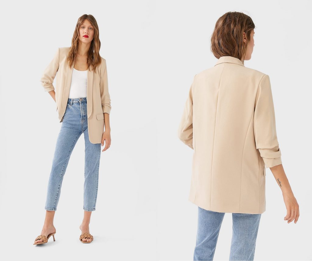 En este caso, Stradivarius también lo introduce en momentos semi-formales como puede ser el trabajo de oficina. Nos aporta un estilo cómodo pero al mismo tiempo que puede resultar elegante si lo combinamos con una blazer y un top blanco o una básica blusa blanca.