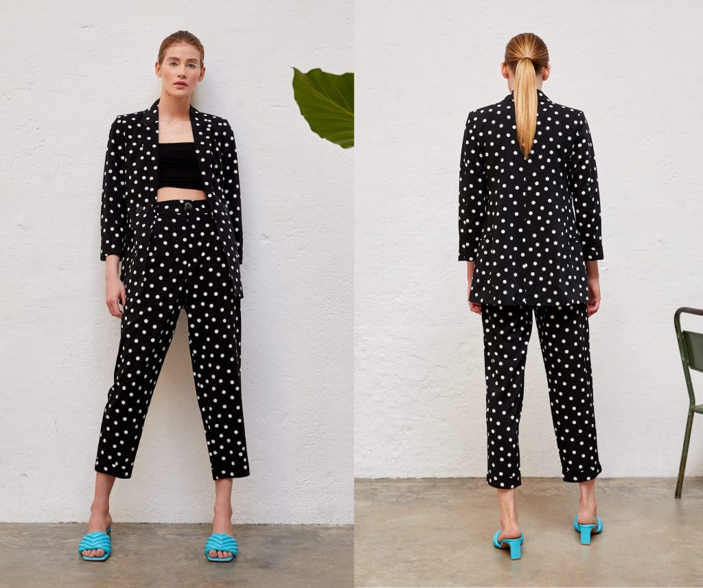 Como bien sabemos, los estampados no pueden faltar en las prendas de moda y más, cuando hablamos de looks de verano. Por eso, si antes mencionamos las rayas marineras, ahora le toca el turno a los lunares. Ellos también marcan estilo. Desde los vestidos, faldas y ahora, los trajes de pantalón.