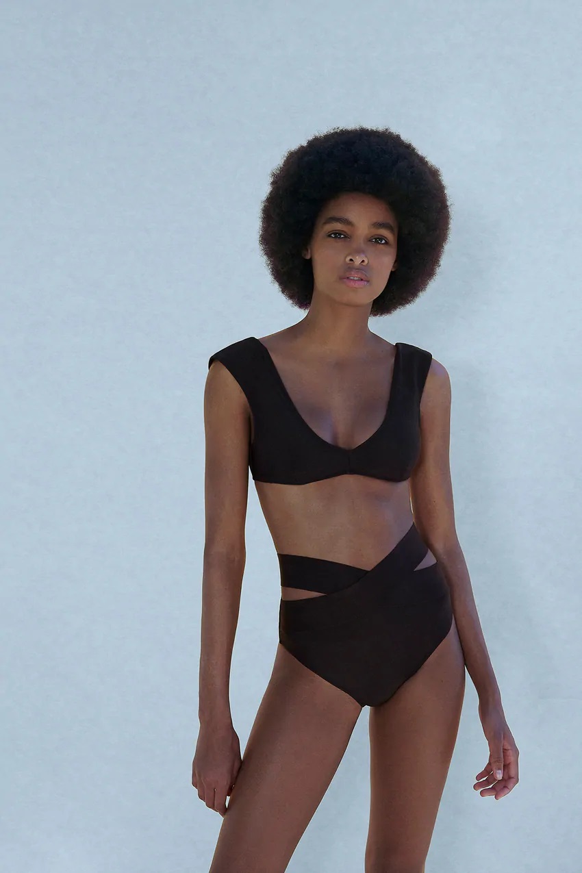 Los colores son otra de las tendencias dentro de un bikini o bañador. Es cierto que para la época estival, se suelen llevar más los colores claros porque se soportan mejor el calor. Aunque los colores oscuros como el negro, también son ideales para conseguir una perfecta estética. El top bikini negro es un modelo que puedes encontrar en Zara.