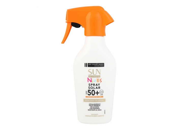El Spray solar niños SPF 50+ Sun Ultimate es uno de los mejores productos que puedes encontrar para el cuidado de la piel de los más pequeños. Ofrece una protección muy alta con factor SPF50+, siendo además repelente de arena y resistente al agua.