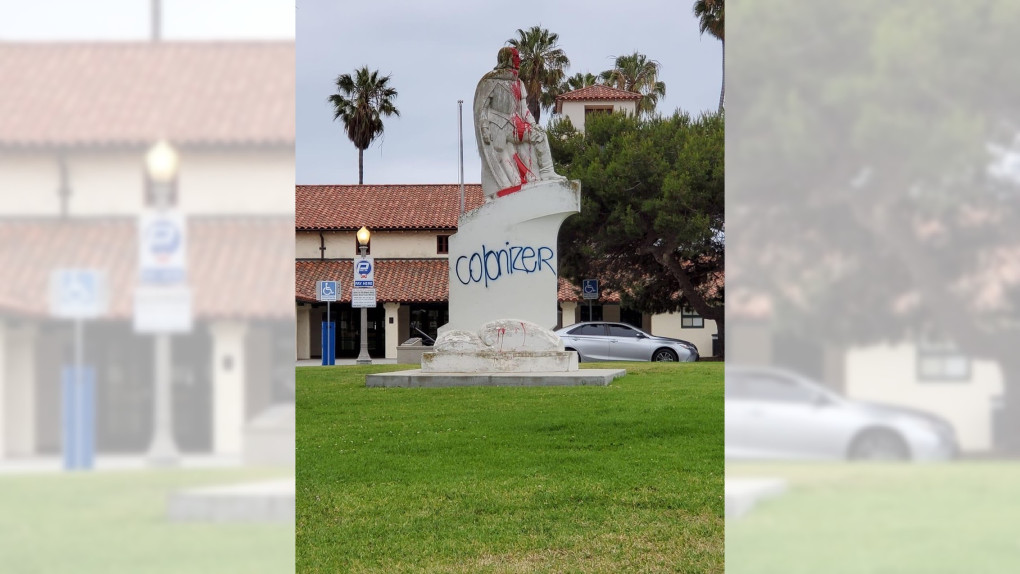 Este domingo, la estatua del conquistador español Juan Rodríguez Cabrillo apareció pintada de rojo y con la palabra «colonizador escrita en ella». Ocurría en el barrio de San Pedro, en California.