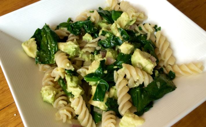 - Comida: 80 g de pasta con espinacas, 150 g de pollo a la plancha, una pera y una infusión.