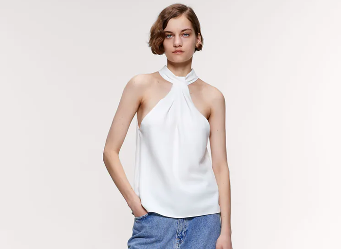 Si buscas un top con cuello halter este modelo que puedes encontrar en Zara es una gran opción, estando disponible a un precio muy reducido, ya que se encuentra disponible por 12,99 euros, un 45% de descuento con respecto a su PVP habitual, de 25,95 euros.